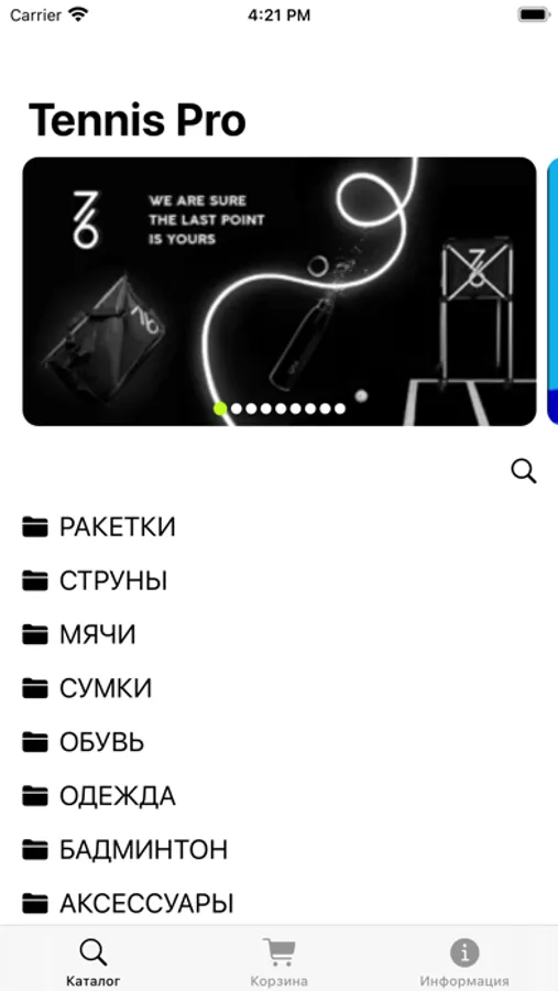 Теннисный инвентарь, одежда и обувь мировых брендов.