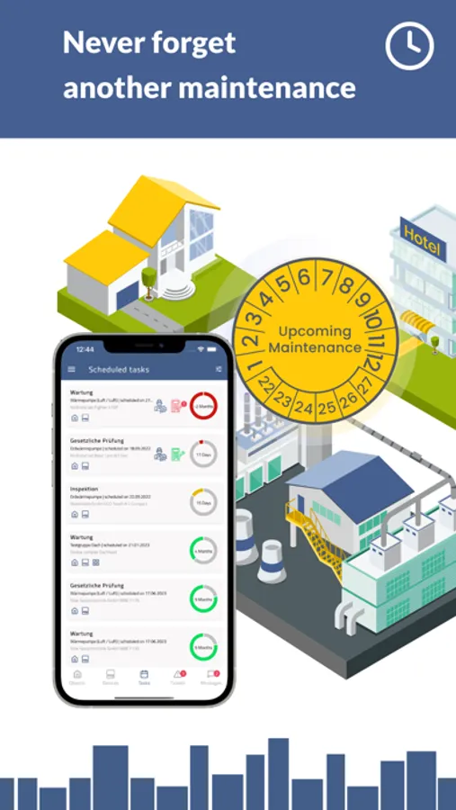 MyBuilding24 not only helps you to never miss a maintenance date again, but also prevents tightly coupling maintenance expertise to individual employees. Our user friendly interface helps you determine which of your facility managers is responsible for which maintenance appointment with which service contractor.