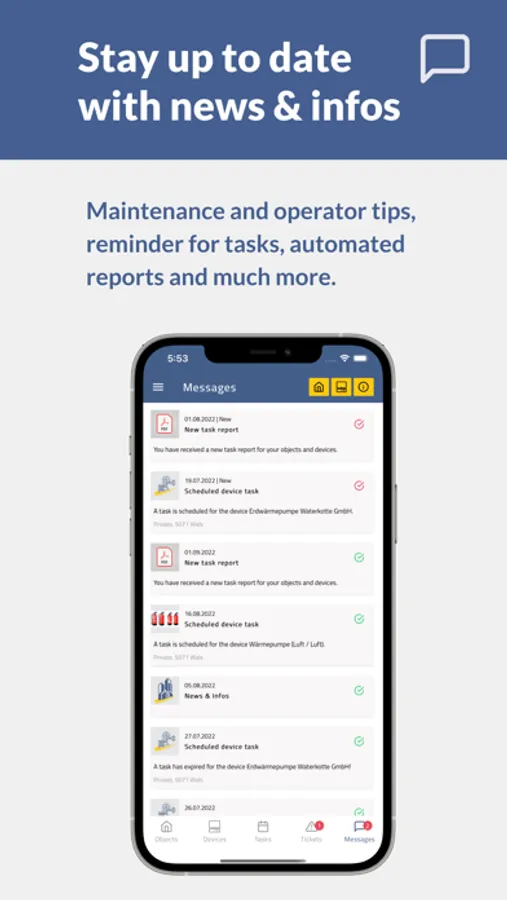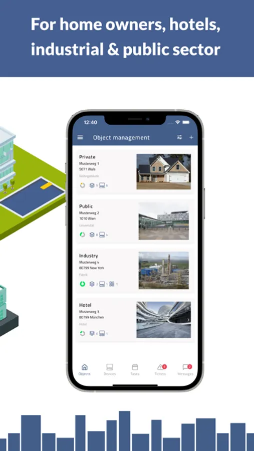 • Location overview: no matter how many different buildings you manage. MyBuilding24 comprises all data! Organize your devices per respective building.