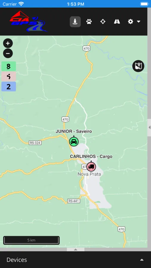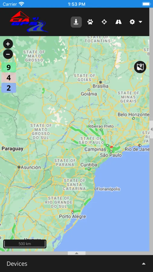 - Escolha de mapas como: OpenLayer, Google Clássico, Google Tráfego, Google Satélite