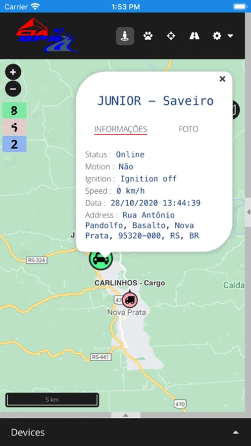 - Relatórios da rota percorrida