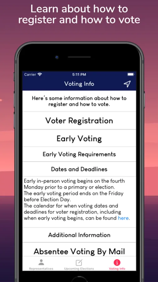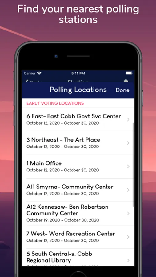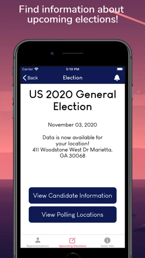 Georgia Votes is a voting app dedicated to helping get out the vote by making it easy to find where and how to vote. You can find your nearest polling locations, upcoming elections and candidates, representatives, and information about how to register and vote.
