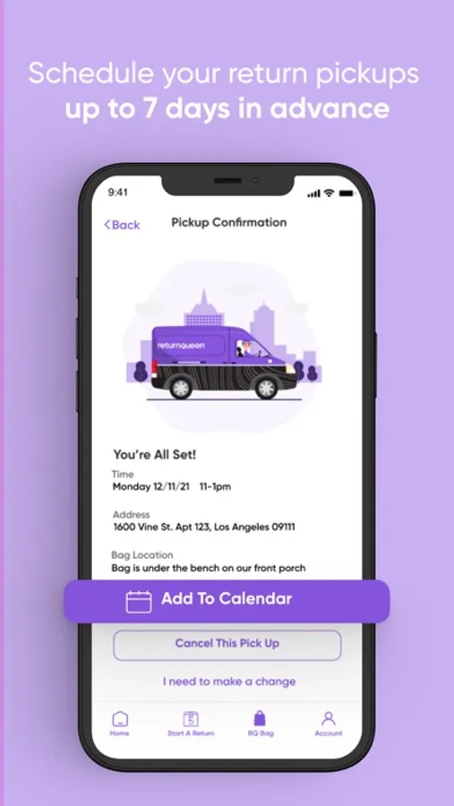 Schedule the time and day of your pickup up to 7 days in advance. Our friendly group of drivers will collect your returns from your doorstep.