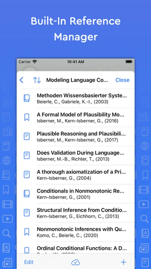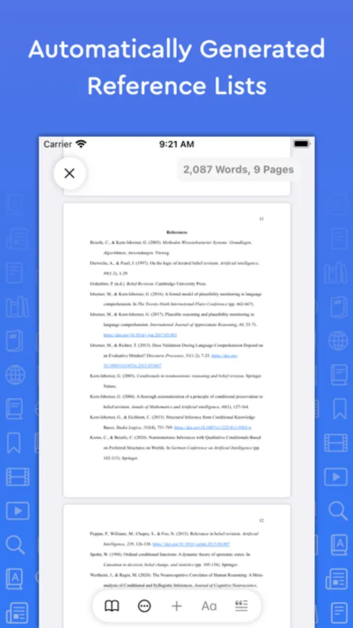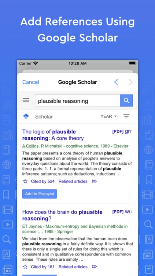 Store and manager references in a universal reference manager backed by iCloud. Search for, add, and store references in one place and use references across multiple essays. Create separate collections (folders) within the reference manager to organize and manage references. Add references quickly and easily using Google Scholar, Essayist’s built-in search, by pasting a URL or manual entry forms. Once added, references are automatically formatted and added to your essay’s references/works cited list.