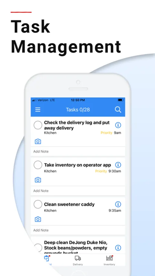 Crafty Office Ops allows you to easily manage your office kitchen with task lists, inventory management, and delivery logs. Tracked progress of your tasks will be displayed live on your Crafty Dashboard!