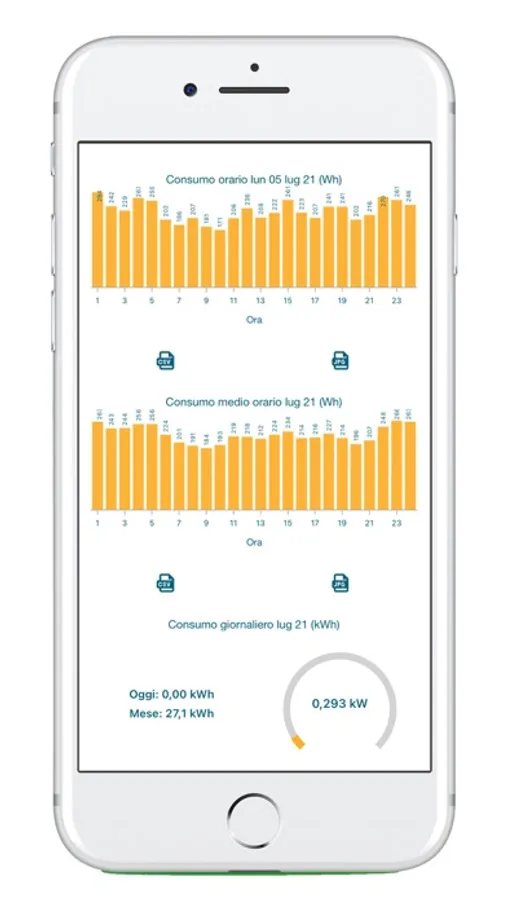 - Consumi istantanei e trend orario, giornaliero e mensile