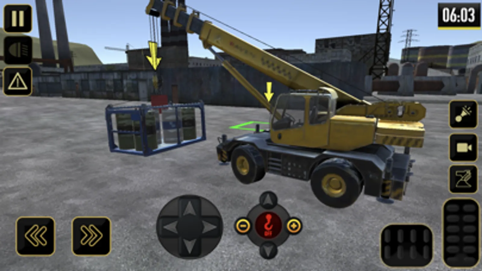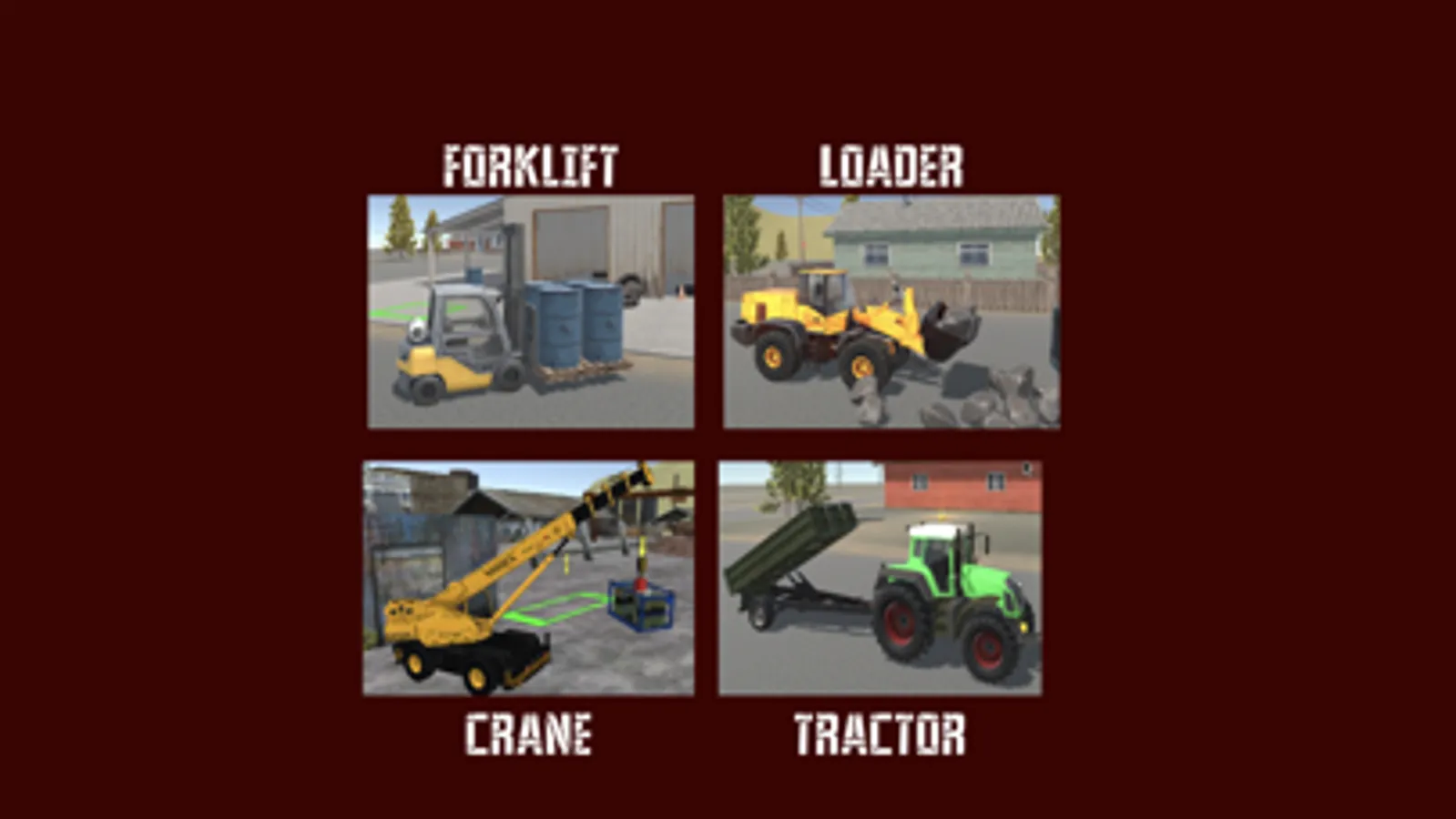 4 heavy-duty machines, including tractor, crane, loader, forklift, on large different items.