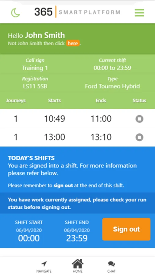 NEAT 365 is an innovative app designed for approved and registered users to manage and track their shifts and journeys. The app’s simple intuitive interface lets drivers sign in and out of shifts, view daily shift information, report on and manage their journeys, use call and chat functions and link directly with devices satellite navigation.