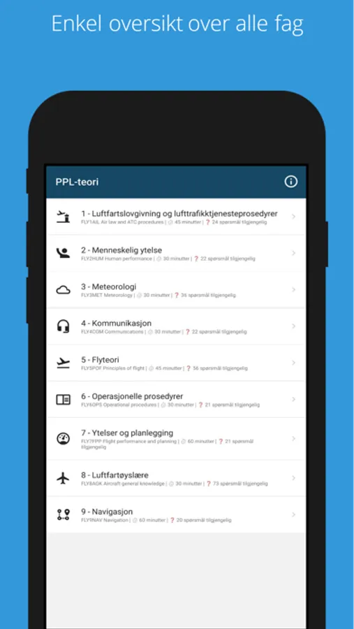 PPL-teori er en enkel app for å øve til teorieksamen for PPL.