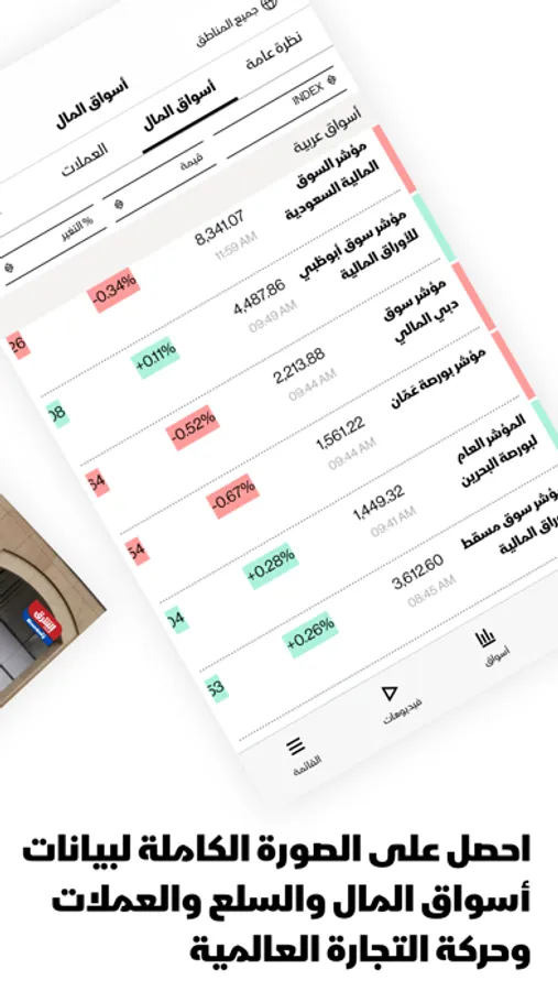 بيانات دقيقة وموثوقة لأهم أسواق المال العربية والعالمية، وكذلك أسعار العملات والسلع والمعادن النفسية.