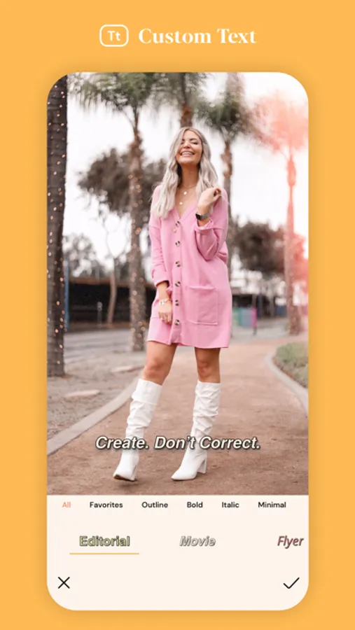 Create—don’t correct—with this new photo + video editor from Sarah Nicole of The Bird’s Papaya! Driven by her inspiring style and self-empowering message, this makes professional editing as simple as a tap. Find the right look to make your edits your own with—