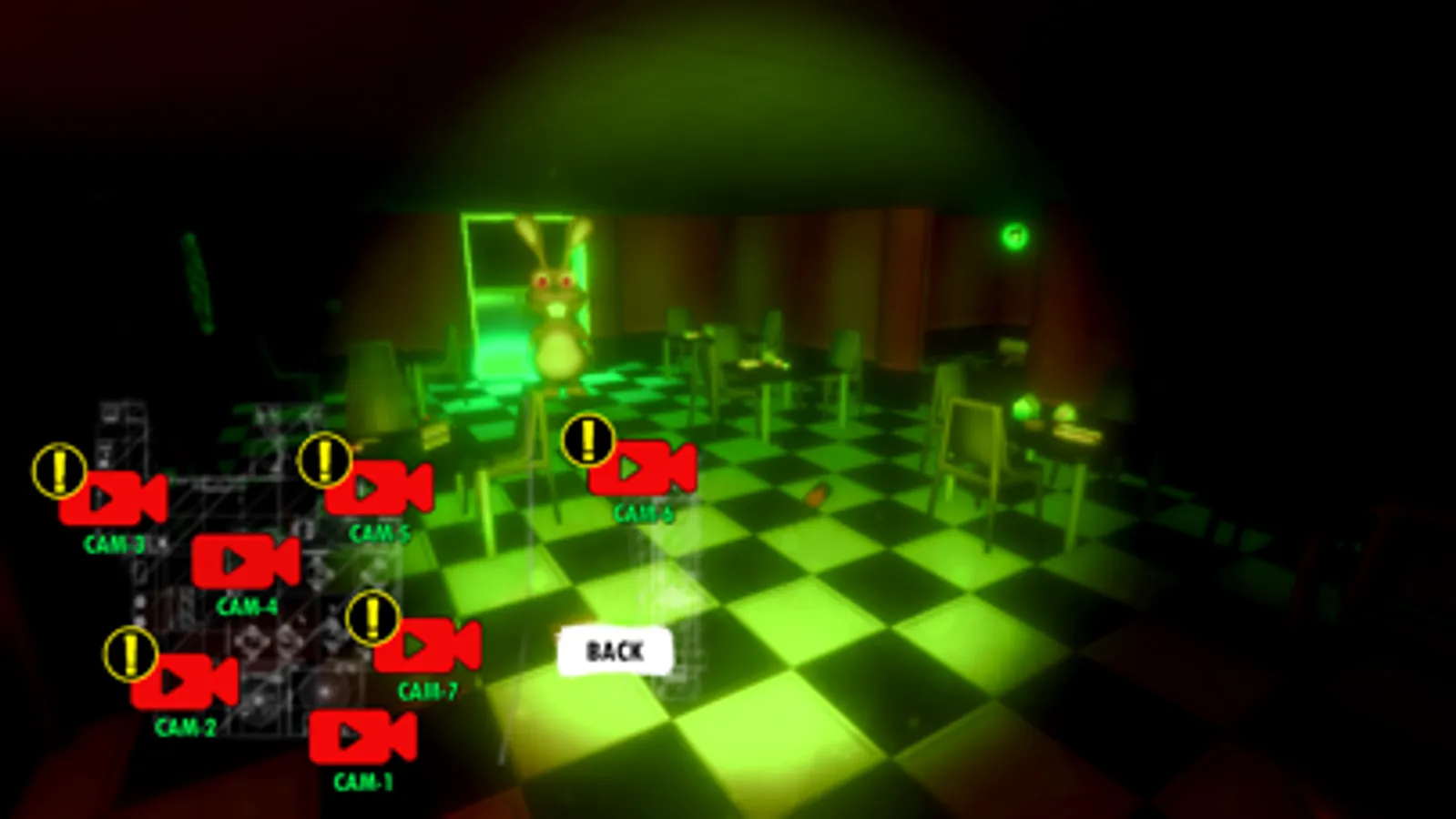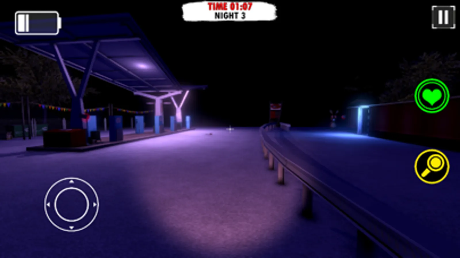 In order to win you must stay as long as possible alive. You are in a pizzeria road station. There is darkness and a lot of dangers around. The light is off, where the wiring is burning. All around except dangerous animatronics!