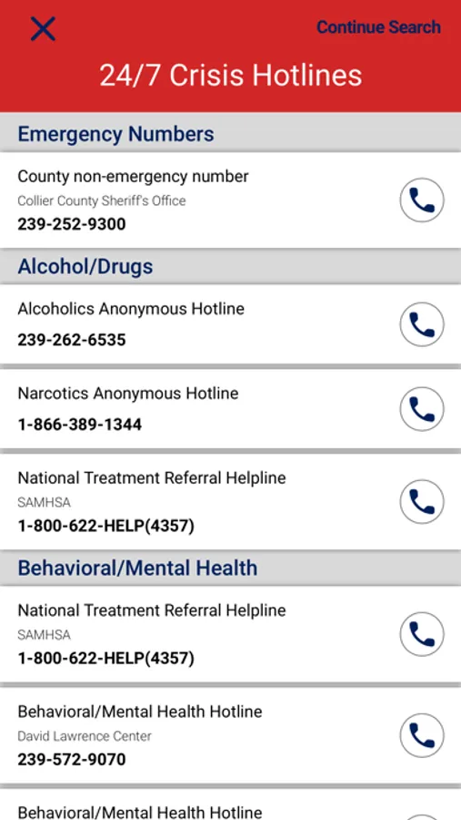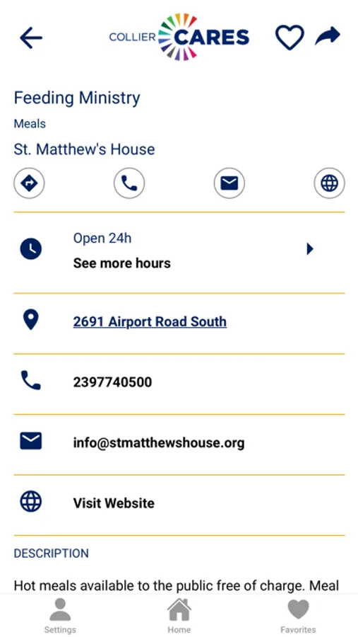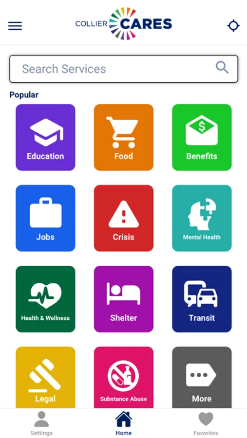 Collier CARES connects families immediately with relevant resources and services to meet their needs. Providers list their services, including the location, hours of operation and key elements of their service. Users can search for services based on 12 categories, including Education, Food, Benefits, Jobs, Crisis, Mental Health, Health/Wellness, Shelter/Housing, Transit, Legal and Substance Abuse, and More.