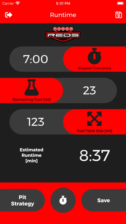 Thanks to Reds Racing app you will never run out of fuel anymore. The new app allows you to calculate fuel consumption during qualifying or testing. Furthermore, you can calculate your race strategy lap time, race time and other variables.