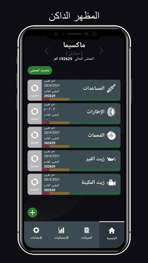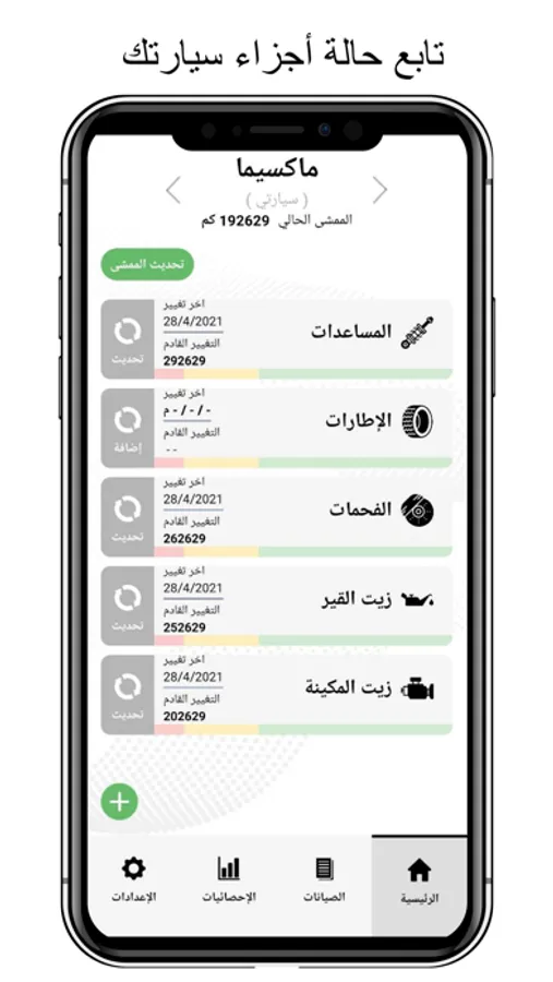 مساعدك الشخصي لمتابعة صيانة سيارتك بسهولة عن طريق متابعة عداد المسافة يقدم الخصائص التالية: