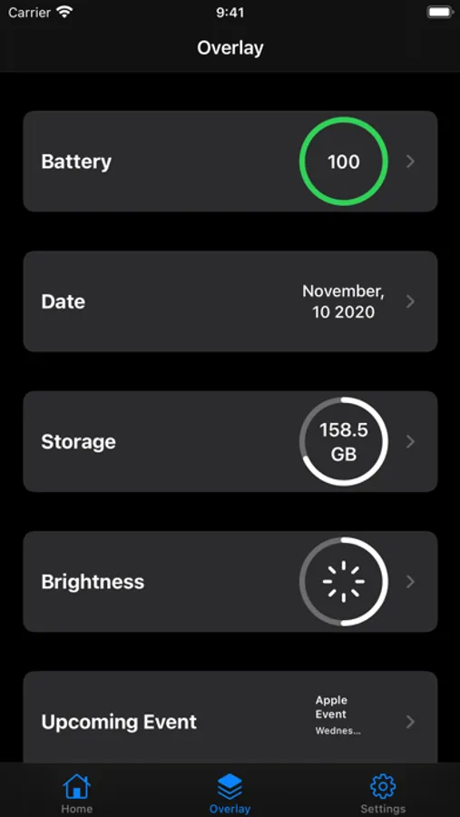 You can select from a number of overlays such as date, storage, battery, brightness and your next calendar event.