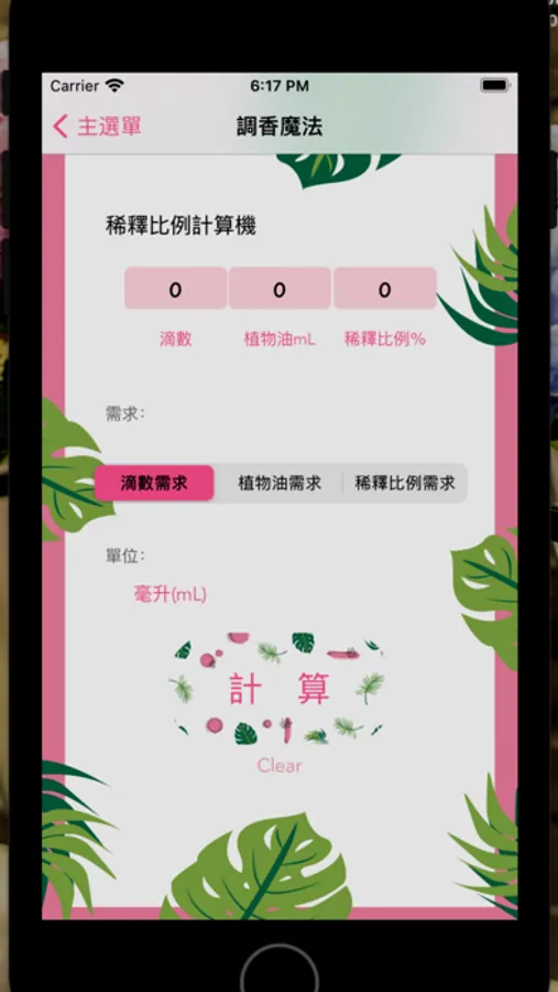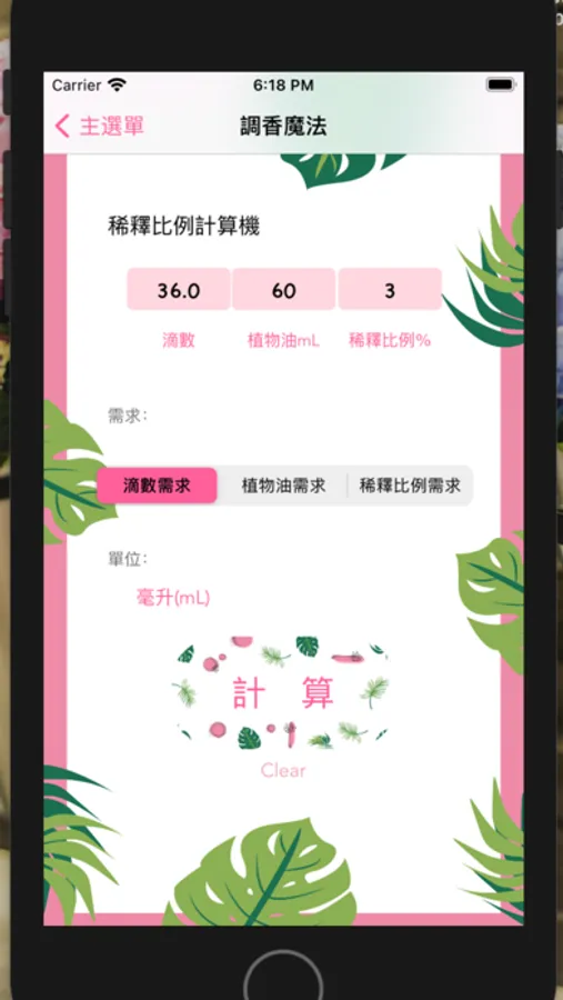 ・比例計算機:輕鬆計算調香的滴數/植物油使用量/比例計算