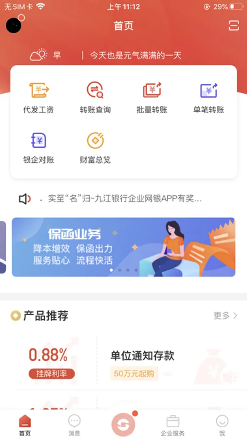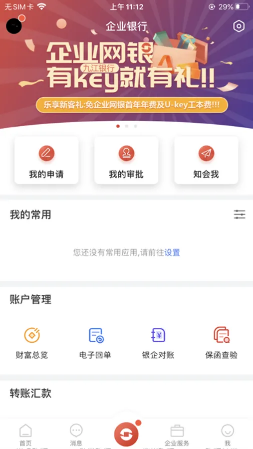 九银E管家手机app是由九江银行为中小企业量身打造的一款手机银行软件,能够为企业用户提供账户管理、存款理财、移动办公、人事管理等诸多金融服务,打造专属办公平台