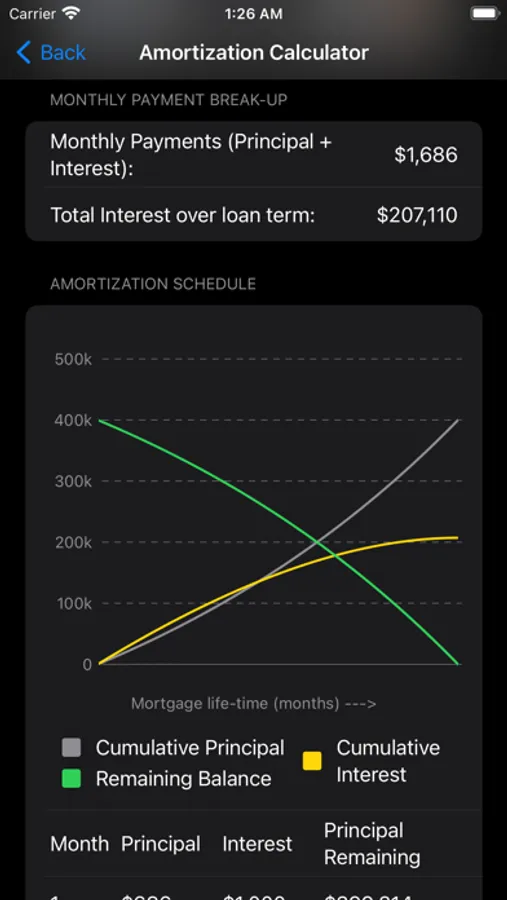 • Amortization Schedule calculator - See how much interest you pay over the mortgage lifetime. Forecast the outstanding balance or interest at any point in the mortgage lifetime and how much of the payment is designated for the interest versus the principal.