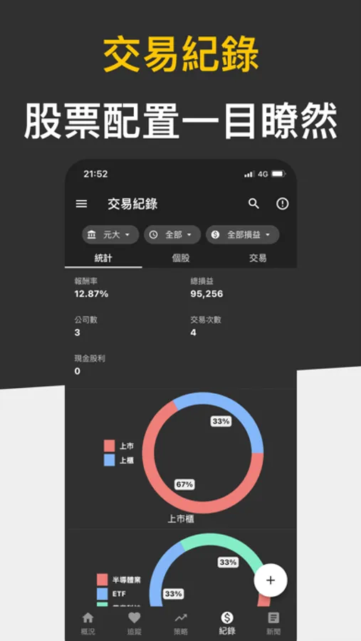 記錄股票買賣紀錄,配置狀態一目了然。