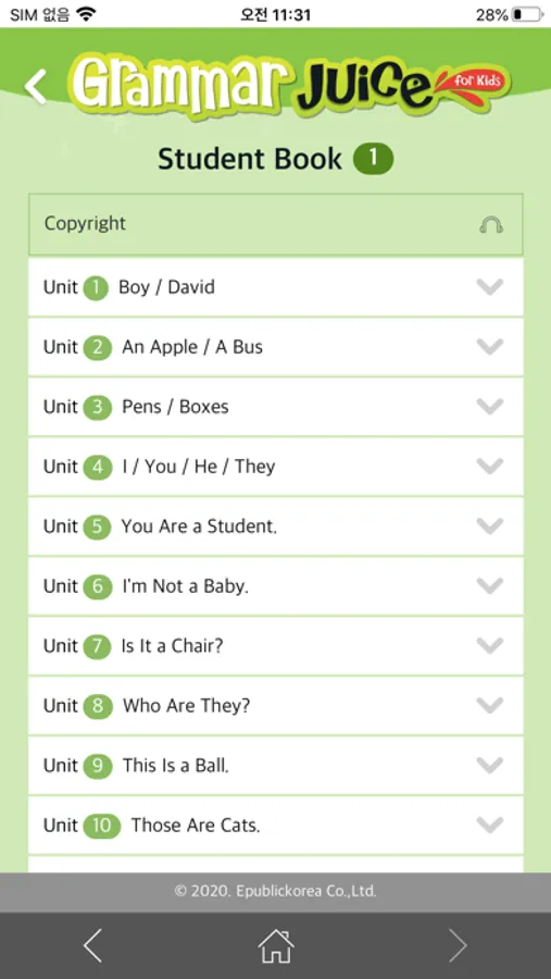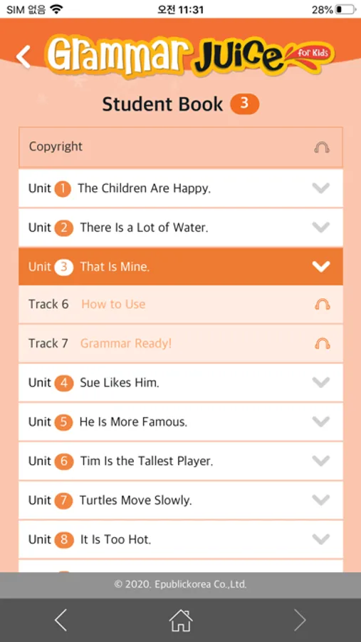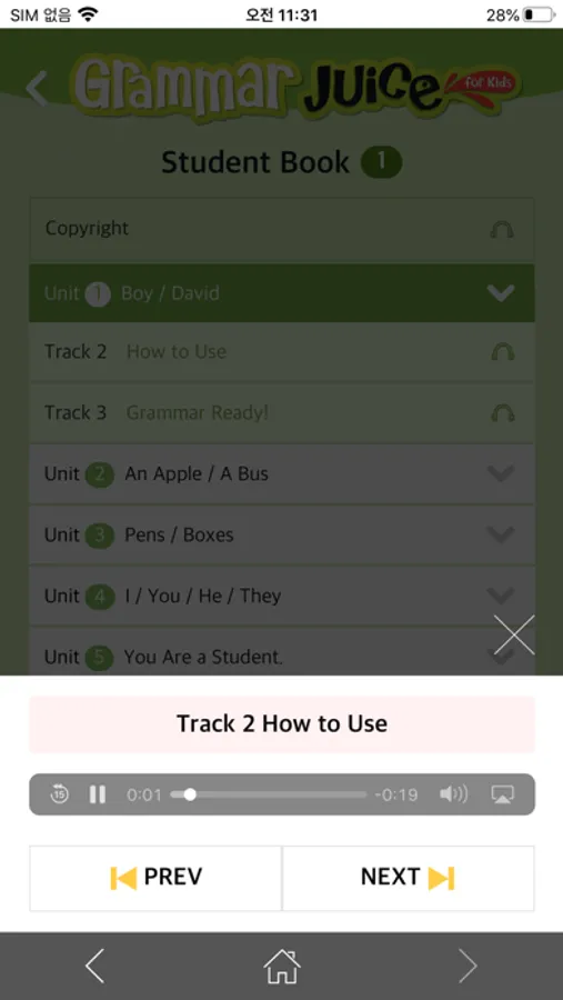 Grammar Juice for Kids app includes free audio files recorded by English native speakers for the warm-up activities.