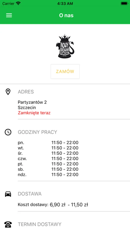 Oprócz zamawiania online aplikacja pozwala sprawdzić: