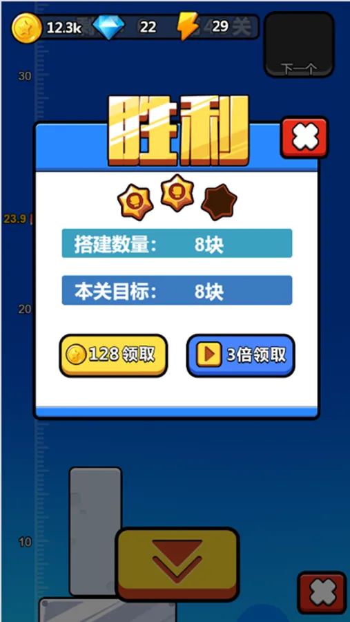 完成关卡要求的积木数即可通关