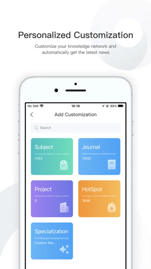 - 我的图书馆,用户可以根据自己的偏好 ,关注学科、作者、期刊的最新动态,也可以定制复杂的检索式。