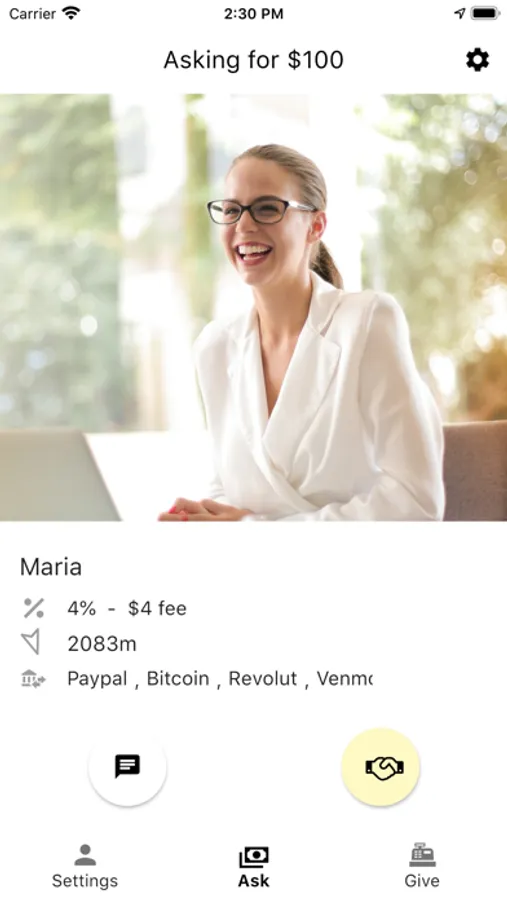 6. Get cash from user, and transfer the agreed amount via money transfer to the other user (commission may apply based on the other user's settings 0-10%!) via a money transfer app that you both use.
