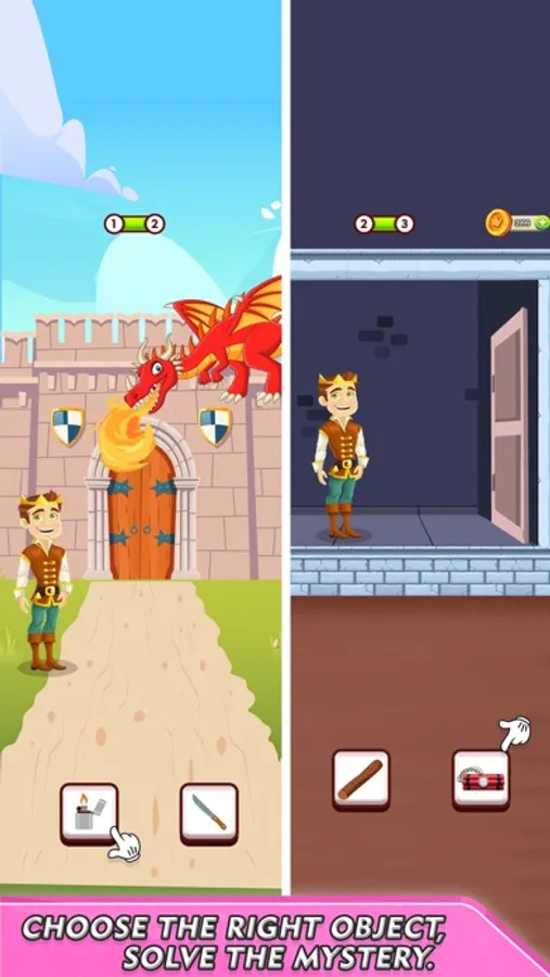 Save the Princess is simple Choose the right object to Solve the Mystery & complete task Game, The game, you have to help the prince who is coming to save the princess by choosing the right object to pass the difficulty of each level. Help the prince escape a dangerous situation by choosing the right thing.