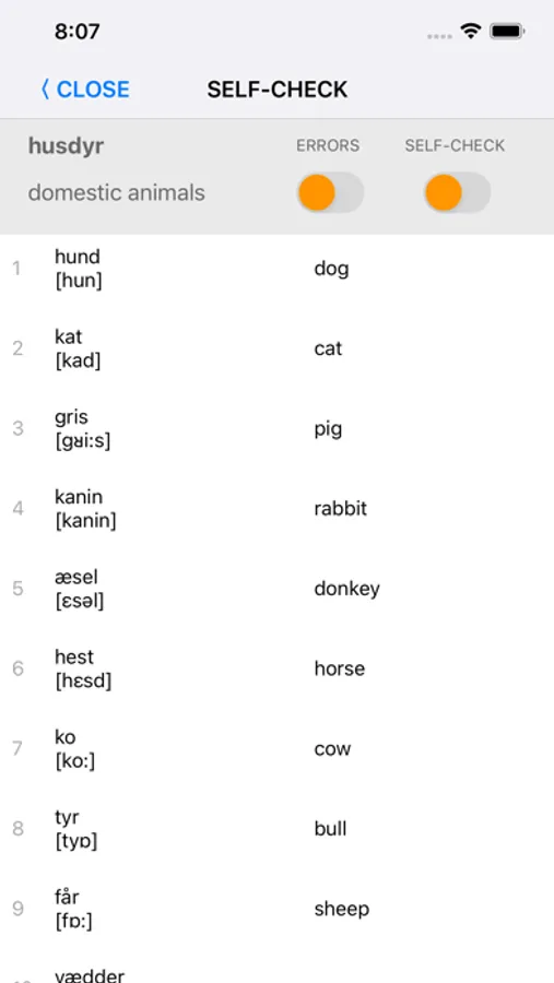 - Testing of the knowledge of the words happens through fun and simple tests: