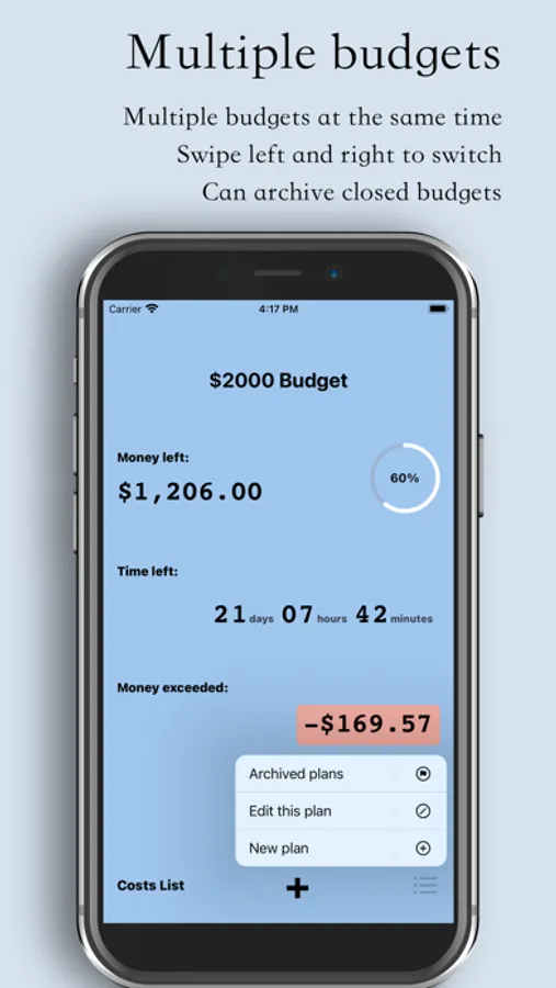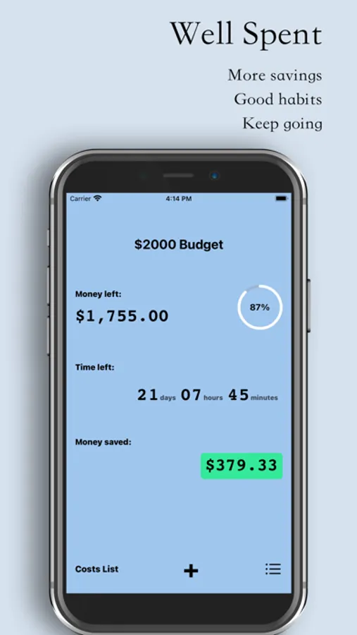 Then, record your daily cost against the budget.