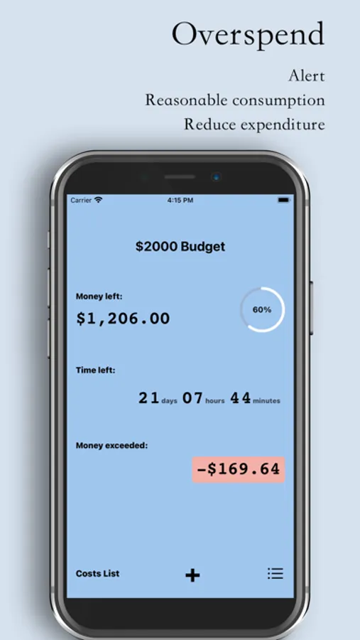 Once you spend money quicker than the speed of the time, there is a "exceeded" warning for your reference.