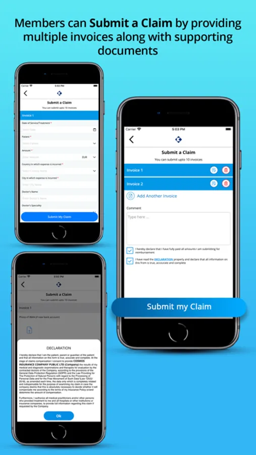 Cosmos Insurance members can see their policy documents, submit their claims, request letter of guarantee, and find member access to policy documents, claims submission, LOG, and medical providers