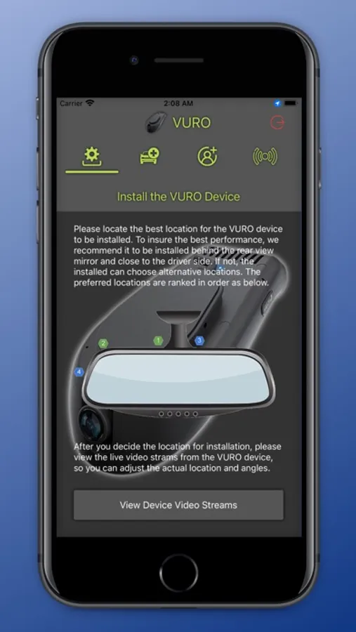This app is designed to work with the VuroCam Smart Terminal only. The app facilitates real-time video streaming view, vehicle and driver registration to help with the installation process.