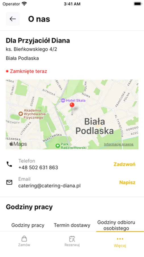 Oprócz zamawiania online aplikacja pozwala sprawdzić: