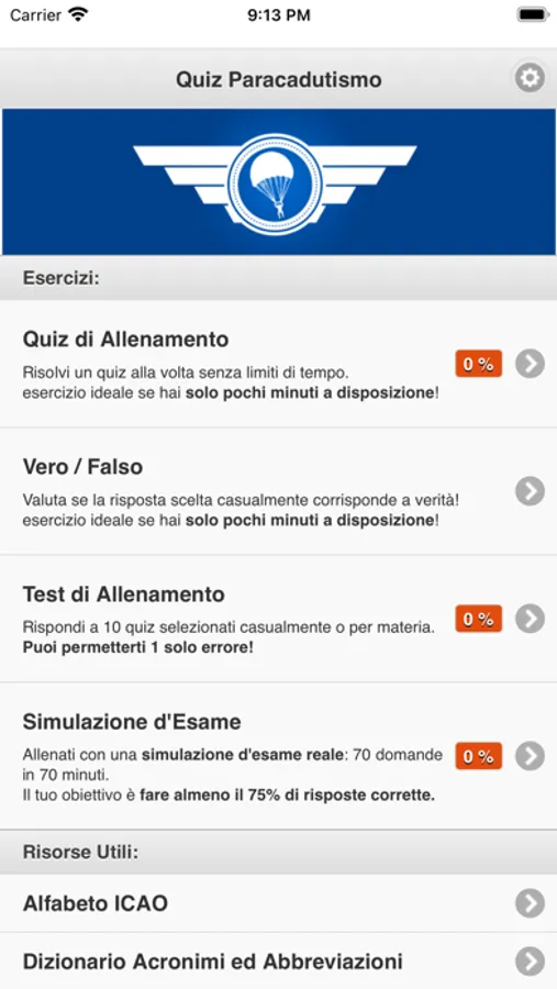 Conseguire la licenza da paracadutista non è cosa facile ed esercitarsi nei quiz è molto importante! grazie a Quiz Paracadutismo puoi esercitarti ovunque e in qualsiasi momento, anche off-line!