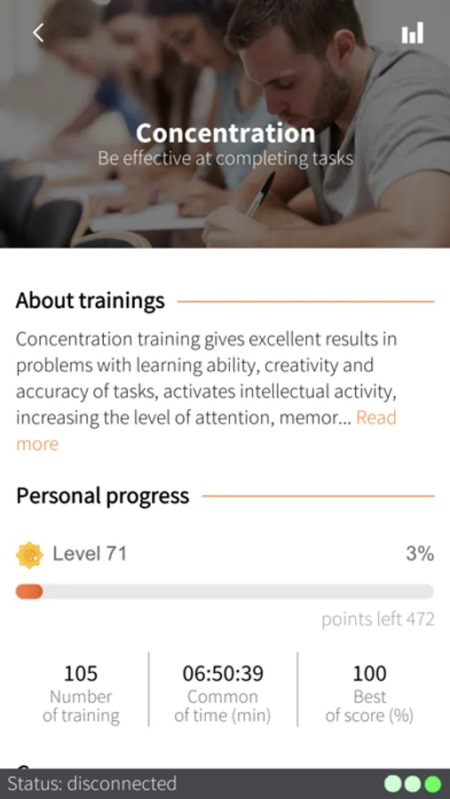 • visualize the level of brain activity and self-regulation trainings;