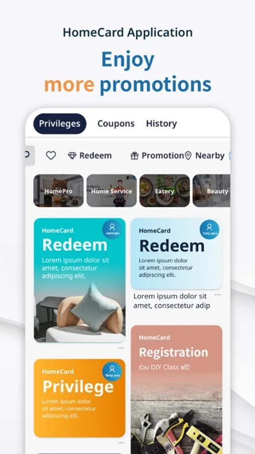 HomeCard application is an easier and more convenient way to enjoy various privileges and promotions from HomePro, MEGA HOME and participating partners from everywhere. It comes with many function created to match all kind of lifestyles