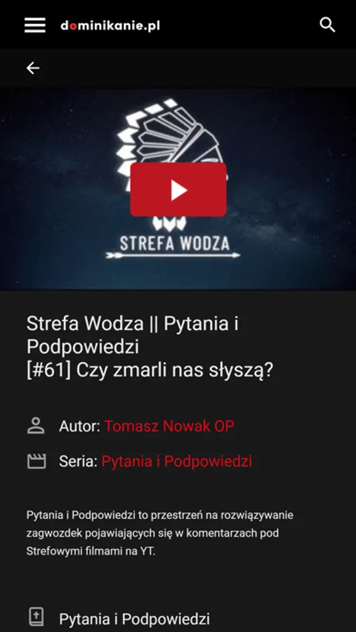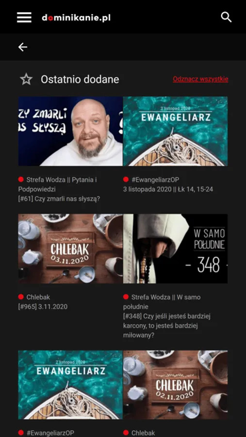 Nasza aplikacja to łatwy i prosty w obsłudze dostęp do materiałów video publikowanych na portalu Dominikanie.pl. Znajdziesz w nim mnóstwo materiałów z dziedziny teologii, biblistyki, duchowości, edukacji i muzyki chrześcijańskiej. Codzienne komentarze do czytań mszalnych, serie dotyczące wielu ważnych zagadnień wiary i życia chrześcijańskiego oraz liturgiczna i uwielbieniowa muzyka w świetnym wykonaniu. Dzięki aplikacji uzyskasz dostęp do całej naszej biblioteki oraz możliwość bycia na bieżąco z pojawiającymi się aktualnościami poprzez powiadomienia bezpośrednio na telefon.