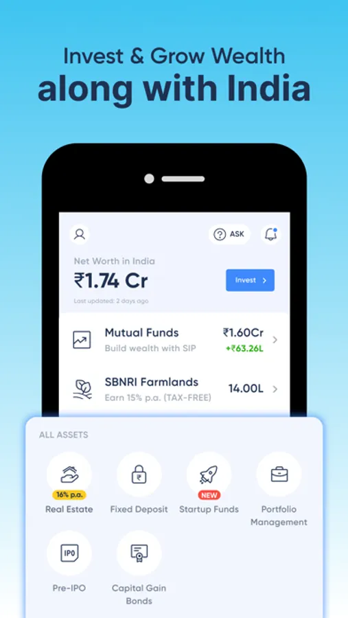 SBNRI has made the entire process seamless and digital. You can now invest in Mutual Funds, FDs, SBNRI Farms, Commercial Real Estate, Start-up Funds, PMS, Capital Gain Bonds and Pre-IPO from your resident country safely and legally. Zero commission*. No minimum deposit. Fractional investing.