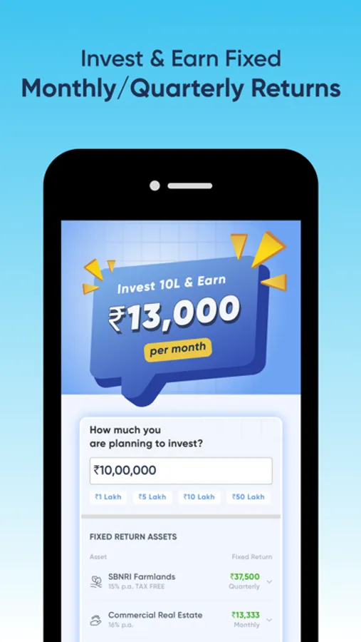 * Commercial Real-Estate (CRE) - Earn monthly rentals & participate in capital appreciation of premium office spaces, Warehouses and more.