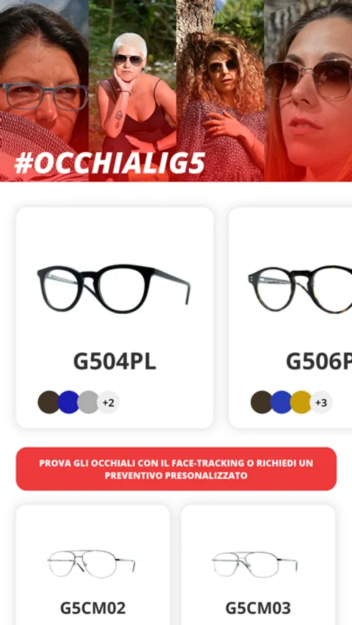 L'applicazione Occhiali G5 permette di sfogliare l'intera collezione G5 in un modo totalmente innovativo.
