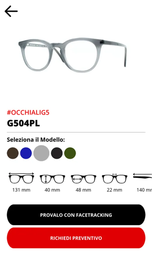 Attraverso la tecnologia del Face Tracking potrete provare gli Occhiali G5 con la vostra fotocamera, e scegliere quello che più vi piace.