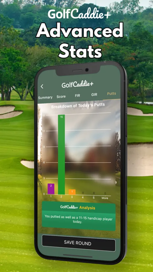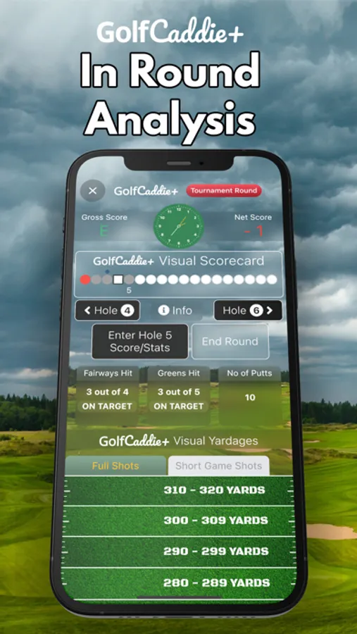 3) Analyses all aspects of your round instantly post round and gives a summary for Score, Fairways in Regulation, Greens in Regulation & Putts.