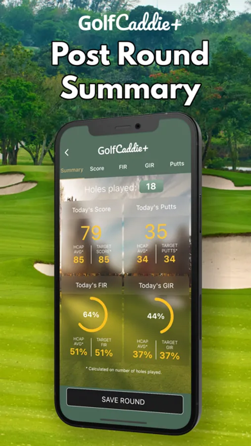 -Post Round Analysis summary and individual feedback on Score, FIR, GIR & Putts
