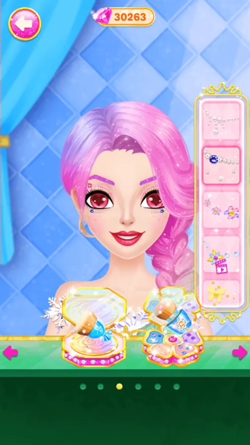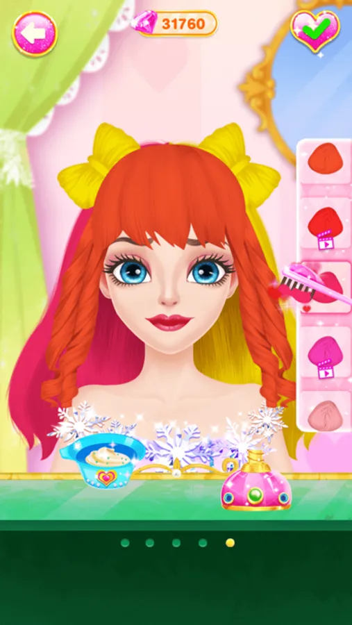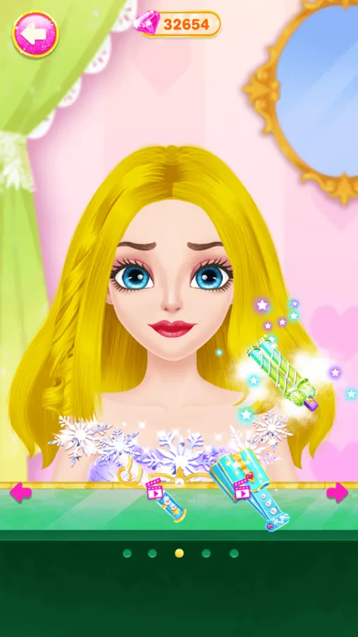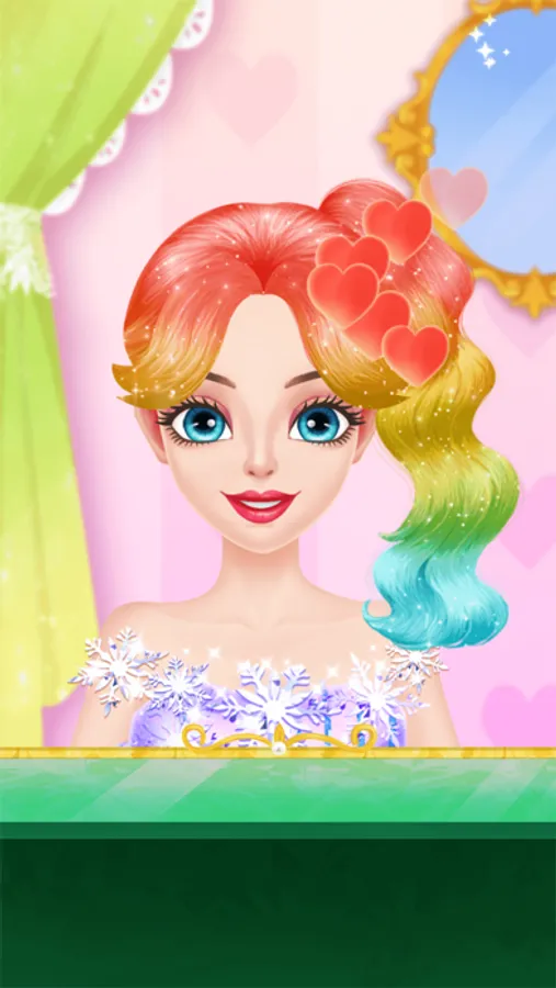 Use all kinds of hair tools such as scissors, hair dyes and hair perm for hair care and design a unique hairstyle for the princess! Then, choose perfect cosmetics with pretty colors for the princess's fabulous makeup! You have everything you need to make her beautiful, e.g. eyebrow pencils, eye shadows, mascara creams, cheek colors and blusher!