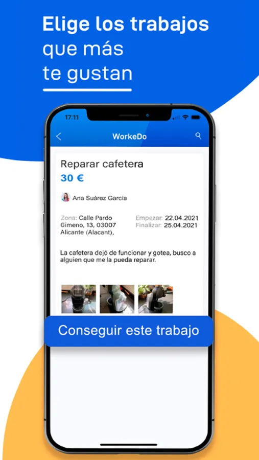 WorkeDo es una plataforma que permite ponerte en contacto con una serie de profesionales o manitas especializados en diferentes áreas para la solución de tus problemas.