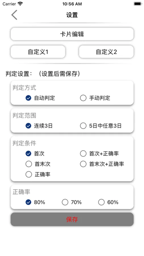 6.可选的自定义精熟标准。(包括连续3日,5日中3日,首末次,百分率等)。符合ABA的教学特点。
