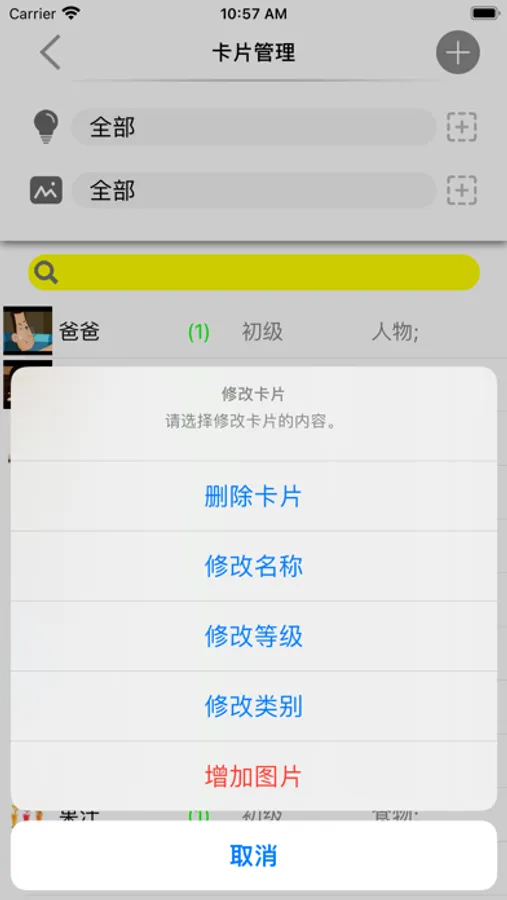 4.单词的图像可以相册,手机相机自定义,同一单词可以在多组中呈现不同的图片,可满足单人多组泛化的要求。